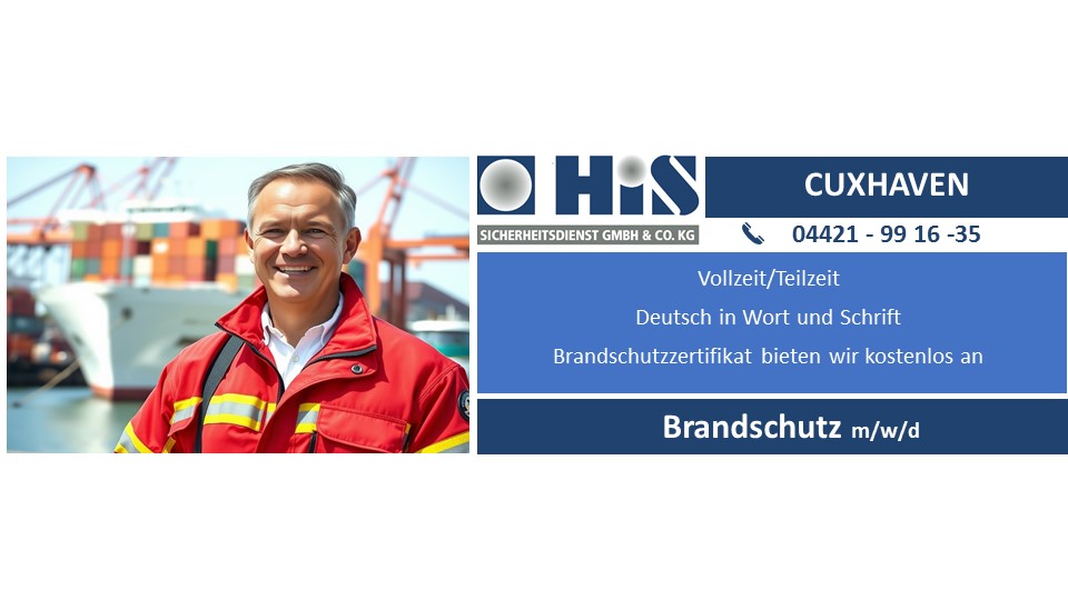 Wir suchen für CUXHAVEN mehrere Mitarbeiter für den Einsatz als Brandschutzhelfer in Vollzeit (m/w/d).
